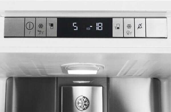 Электронное управление с внешним или внутренним дисплеем позволяет точно устанавливать температуру в каждой камере отдельно. На дисплее четко отображается текущая температура и активные режимы. Пользователи хвалят удобство настройки и хорошую видимость показателей по сравнению с тусклыми панелями старых холодильников. -