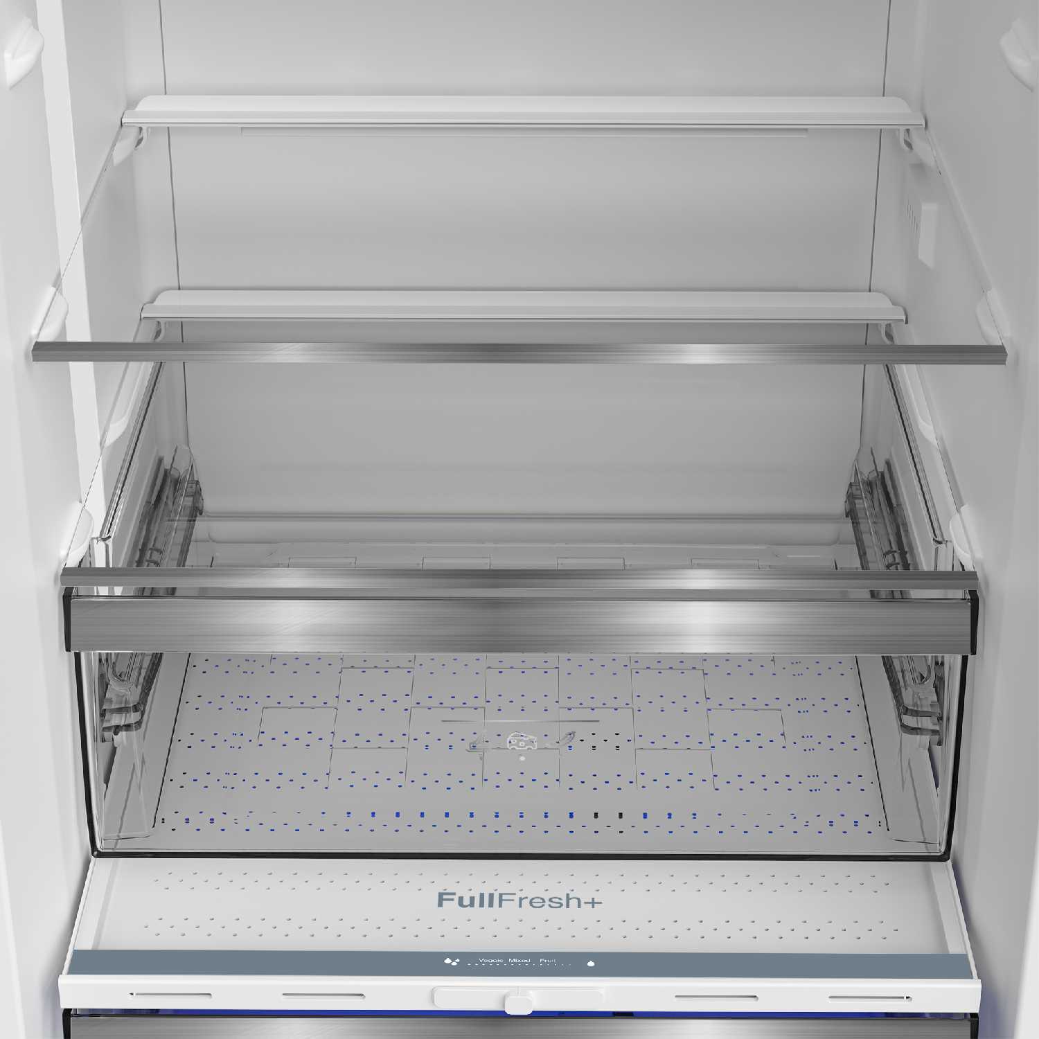 Витаминная зона VitaminZone с трёхцветной LED-подсветкой стала главным дифференцирующим фактором. Технология, имитирующая природный цикл солнечного света, реально продлевает свежесть овощей и фруктов на 5-7 дней, что подтверждается наблюдениями за сохранностью огурцов, томатов и ягод. Сухая зона свежести с регулируемой влажностью (0-3°C) в виде выдвижного ящика на телескопических штангах оптимальна для мяса, рыбы и сыров. Пользователи отмечают отсутствие пересушивания продуктов благодаря сбалансированной циркуляции воздуха. Однако выявлен конструктивный недостаток: ящик невозможно разобрать для глубокой очистки, что затрудняет гигиеническое обслуживание.