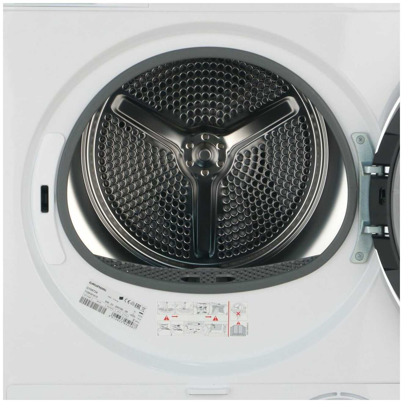 Барабан вмещает объем двух стандартных стирок: 4-5 кг полотенец, 2 пуховика или семейный комплект постельного белья. Реальная загрузка ограничена не весом, а свободным пространством для циркуляции воздуха – вещи не должны быть спрессованы.