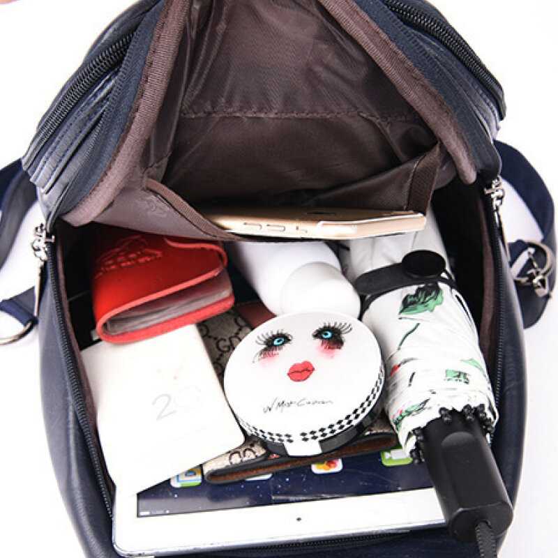 - + Вместительный, много дополнительных кармашков. Смогла наконец-то отдельно друг от друга положить аж 4 предмета: 2 телефона, паспорт, визитница. На плечах сзади сидит удобно. Ну и внешний вид полностью соответствует картинке, т.е. очень даже ничего.