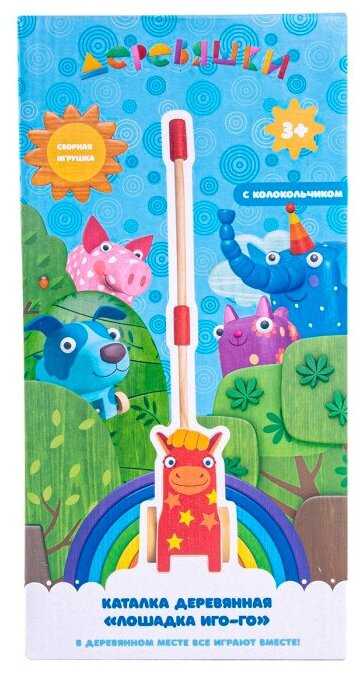 - + Красивая , яркая каталка. Есть колокольчик , который звенит при катании.