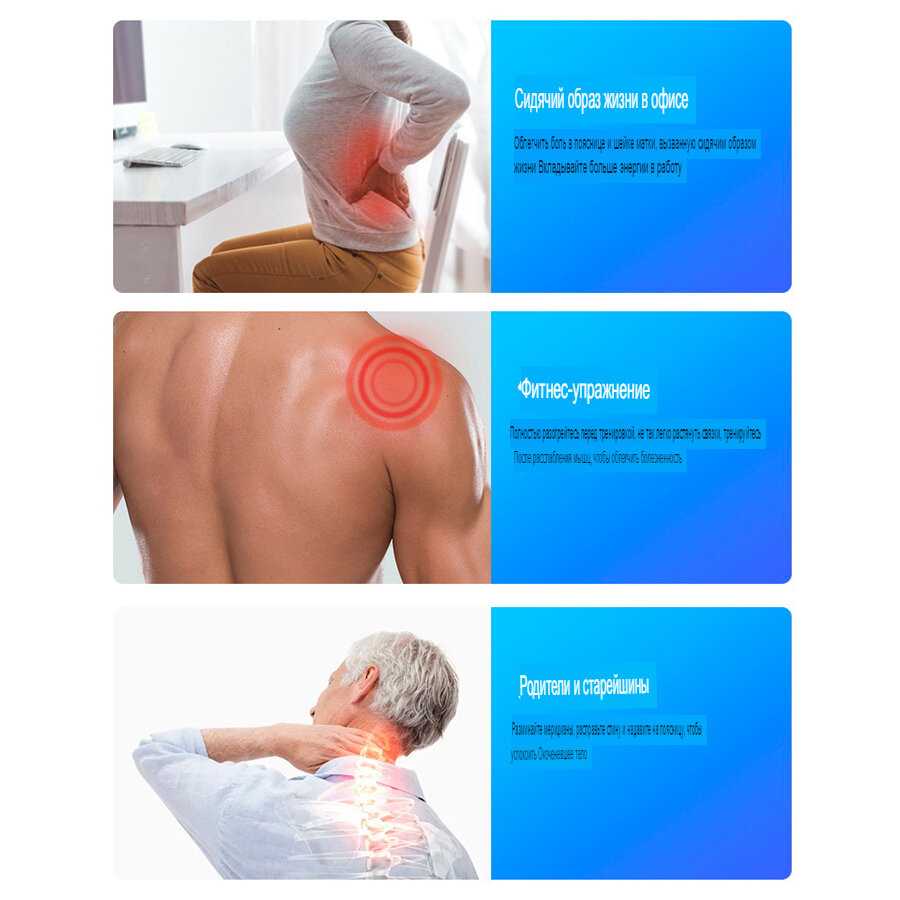 | Зона массажа : | бедра, голени, грудная клетка, живот, колени, ладони, лодыжки, ноги, плечи, поясница, пресс, пятки, спина, стопы, талия |