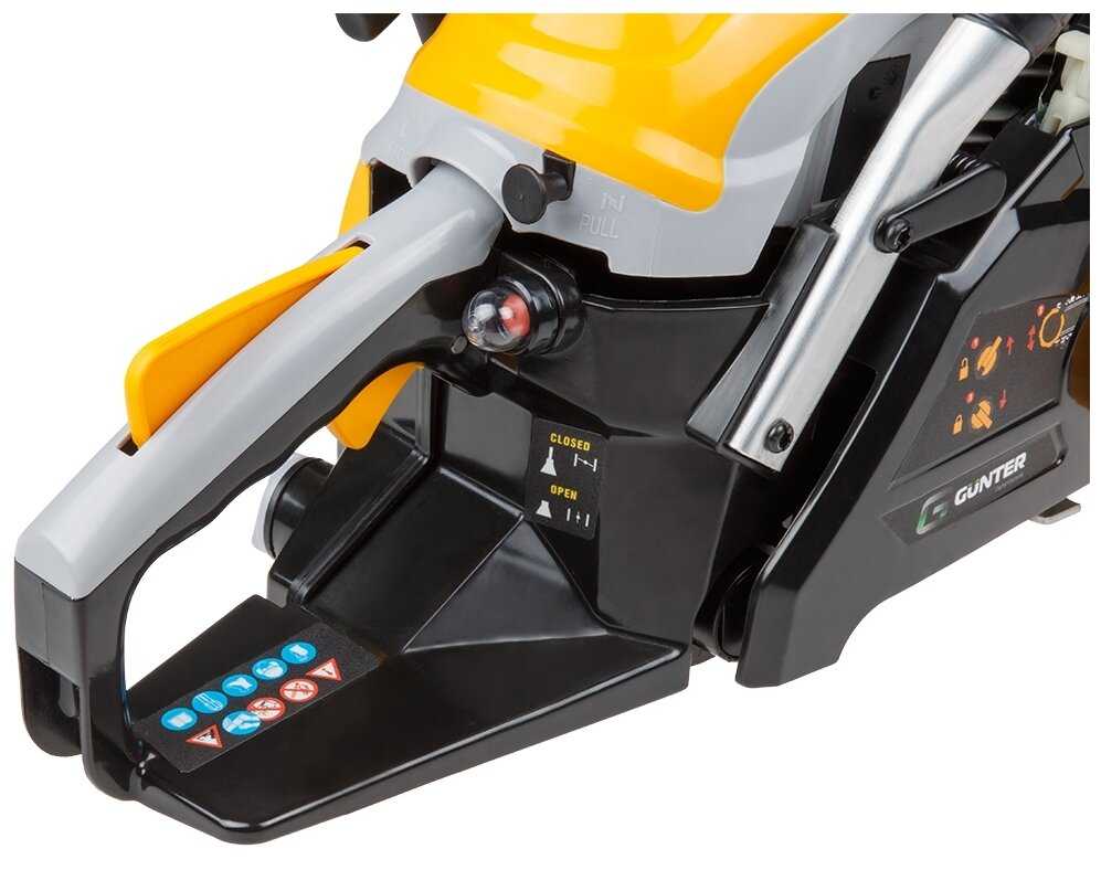 Особенности конструкции : | антивибрационная система, бесключевая замена оснастки, блокировка кнопки включения, регулировка натяжения цепи без инструмента |