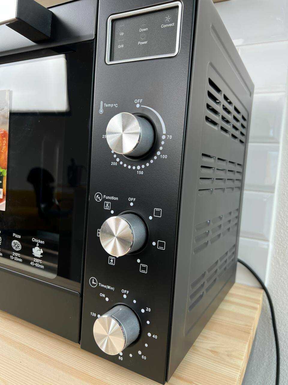 Хорошая цена за такую печь , есть таймер на 120 мин ,конвекция , гриль , регулировка температуры, Жена очень довольна)