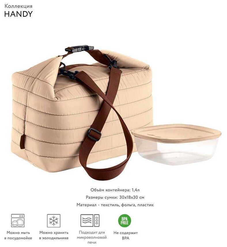 | Особенности : | верхняя ручка, набор посуды в комплекте, наплечный ремень |