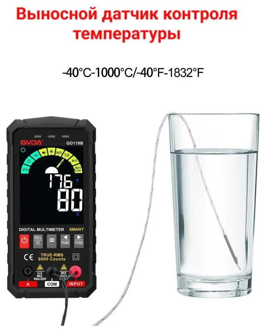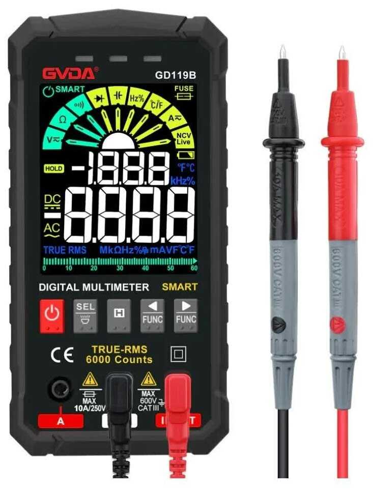 - + Функционал, автоматический режим, фонарь, чехол и кейс, то есть сперва мультиметр упакован в жесткий резиновый чехол, а уже потом в кейсе на молнии лежит. даже батарейки в комплекте есть! Яркий дисплей, читаемый очень хорошо. при включении показывает температуру окружающего воздуха, мелочь а приятно. В комплекте термопара кстати еще, можно замерять температуру воды например для каких то целей, замерить например температуру из дефлектора авто, тем самым проверить работу кондиционера.