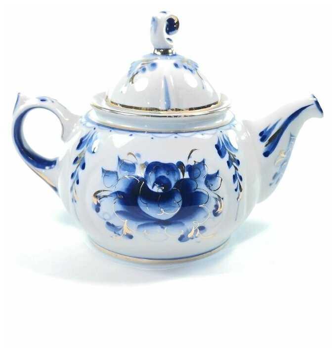 3 отзывов пользователей o Гжельский Фарфоровый Завод Чайник Пышка золото Гжель ручная роспись