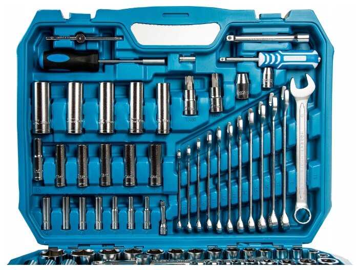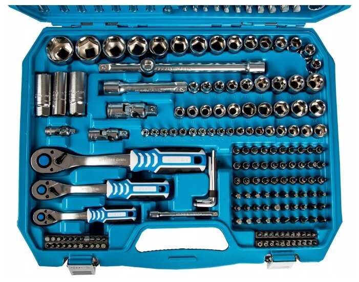 | Инструменты в комплекте : | вороток для головок, ключи гаечные, ключи имбусовые (шестигранные), ключи торцевые, отвёртки, рукоять для бит, рукоять для головок, трещотка |