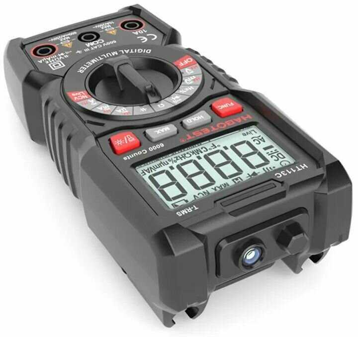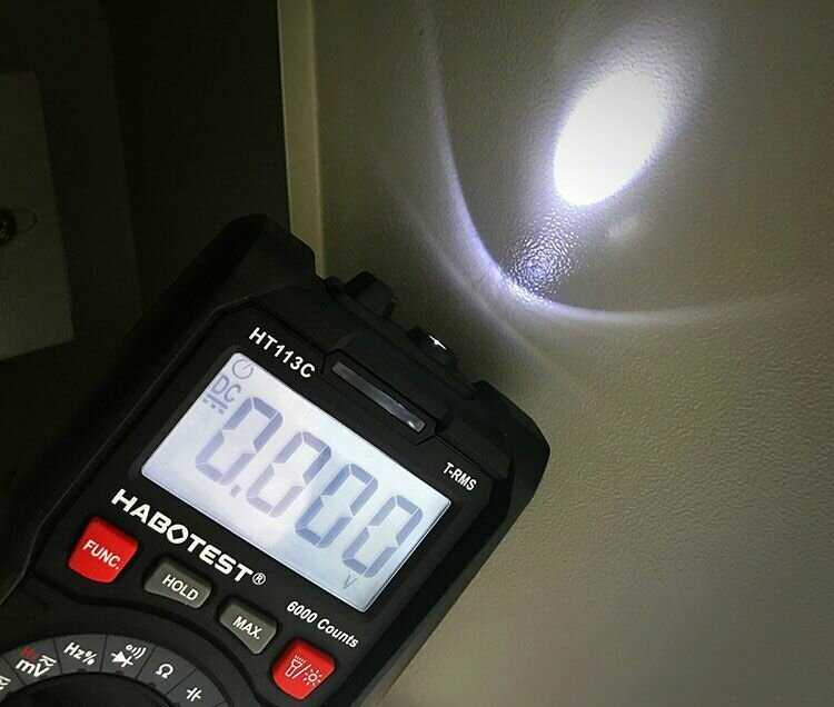 | Особенности : | автоматический выбор диапазона измерений, автоматическое выключение, подсветка дисплея, фиксация измерений, фонарик |