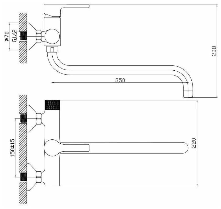 Отзывы о Смеситель для ванны Haiba, длинный излив 35см, черный/матовый