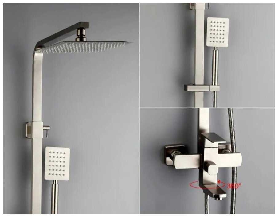 Отзывы о Душевая стойка c верхним тропическим душем и ручной лейкой, цвет: серый металлик