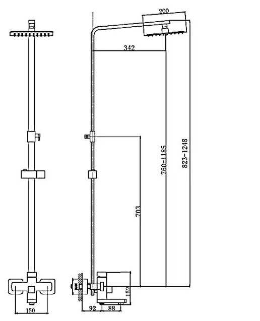 | @Комплектация : | Смеситель, душевая штанга, держатель для лейки, лейка, шланг, верхний душ, эксцентрики, отражатели, гибкая подводка |