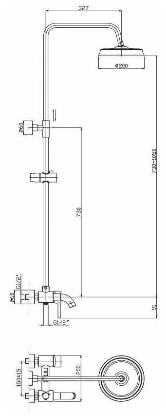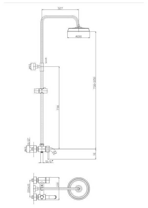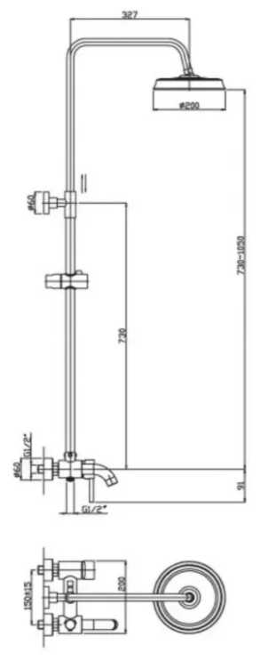 | @Комплектация : | Смеситель, душевая стойка, верхний душ, кронштейн для верхнего душа, держатель лейки, душевая лейка, душевой шланг, крепления, отражатели, эксцентрики. |