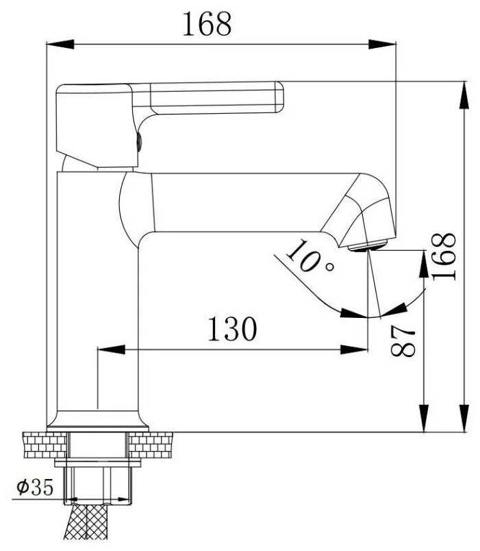- комплектация: Смеситель; Керамический катридж 35 мм; Аэратор; 40 см гибкая подводка; Гарантийный талон