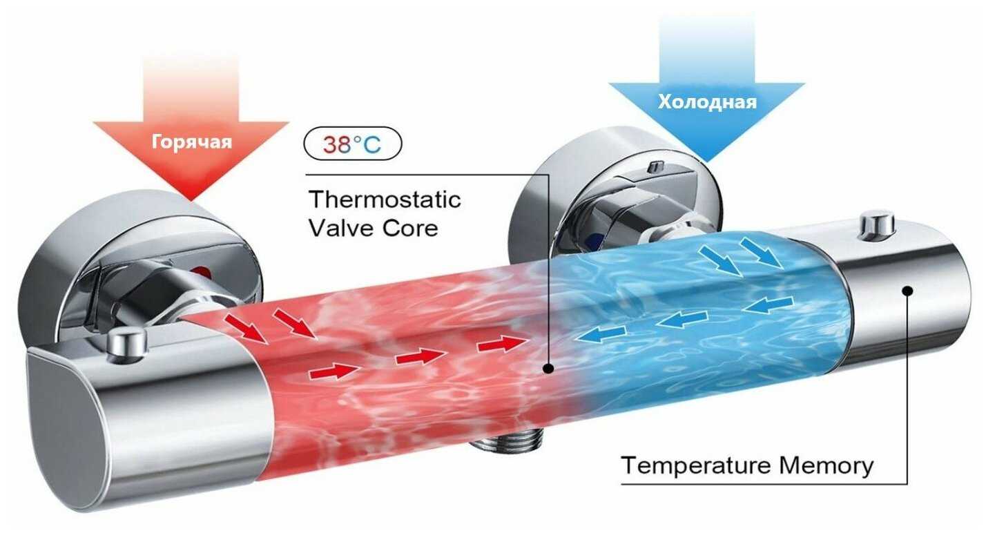 - Термостат сокращает время настройки температуры, уменьшая расход на 15-20% по сравнению с обычными смесителями.