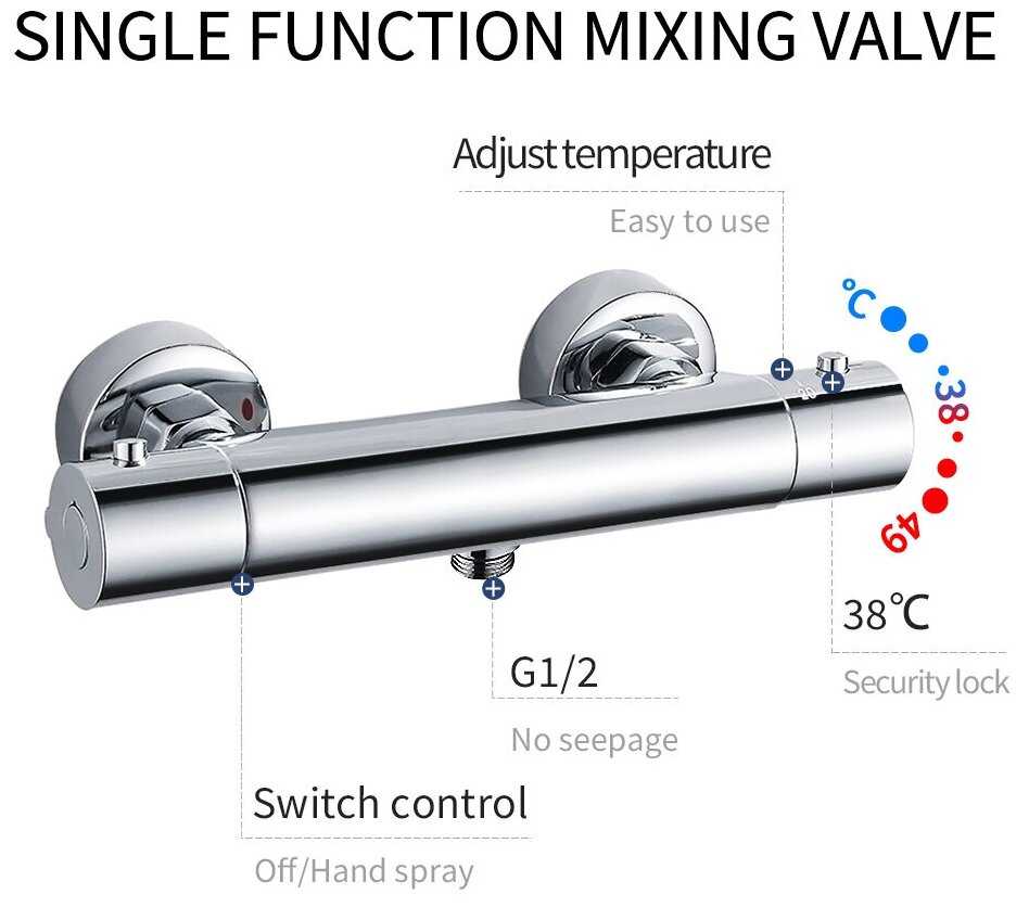 Брали на замену обычного в частный дом в душевую на втором этаже. Со старым однорукий смесителей каждый приём душа сопровождался постоянной регулировкой температуры. Основные проблемы две. Остывание воды в твердотопливном котле из-за выхода горячей и заполнения холодной. Вторая проблема открытие крана в других точках или вообще спуск воды в туалете, что приводило к значительным перепад ам температуры и давления воды.