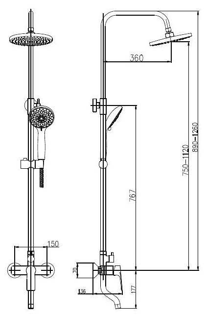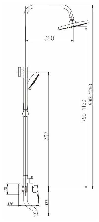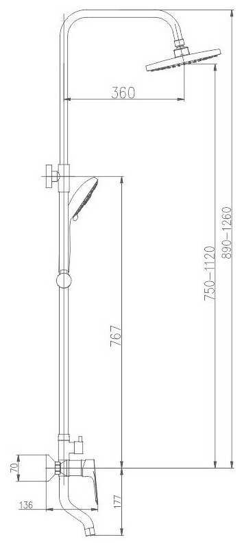 | Дополнительная информация : | высота стойки для душа: 1260 мм |