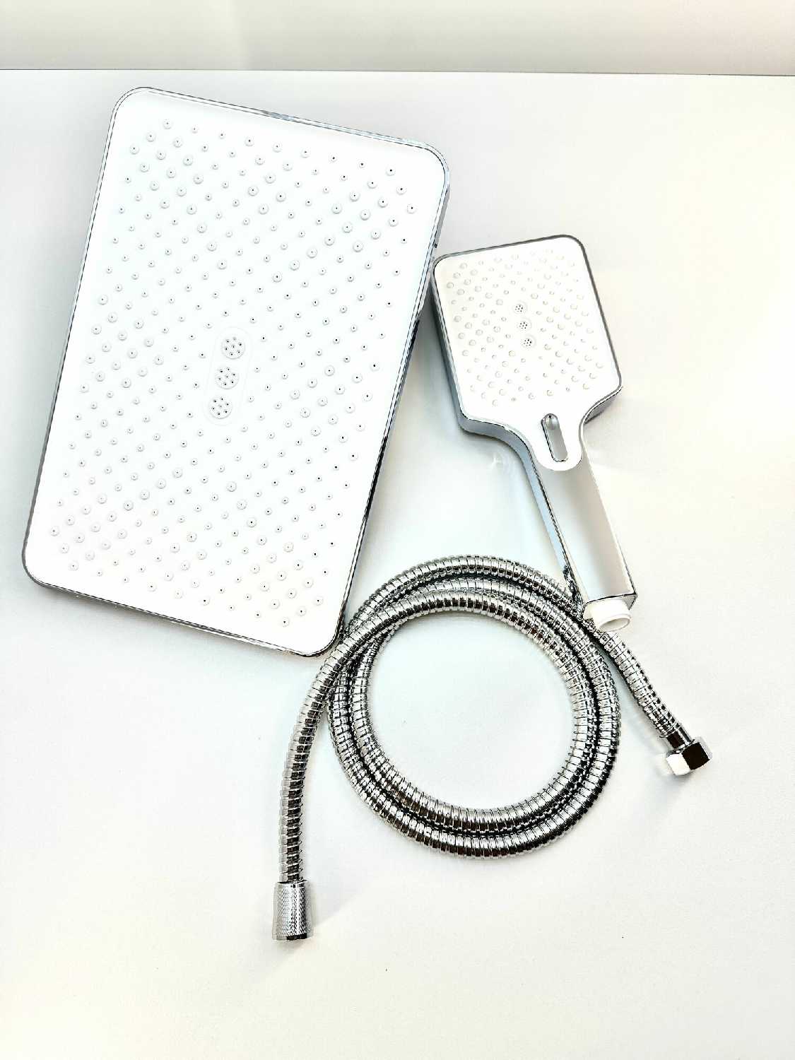 Душ система хорошая, лейки отличные, но есть нюансы: чтобы включить излив, нужно сначала включить ручной или верхний душ - не удобно. Смеситель при включении шумит.