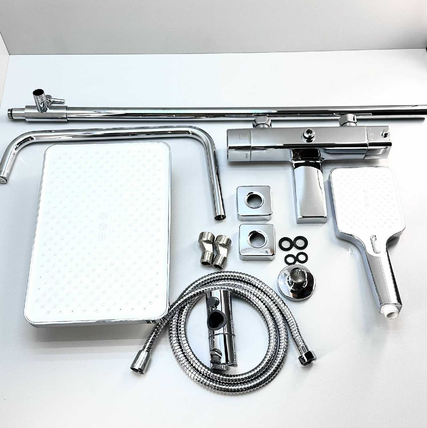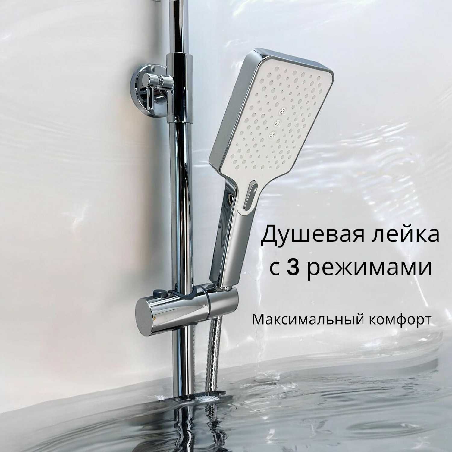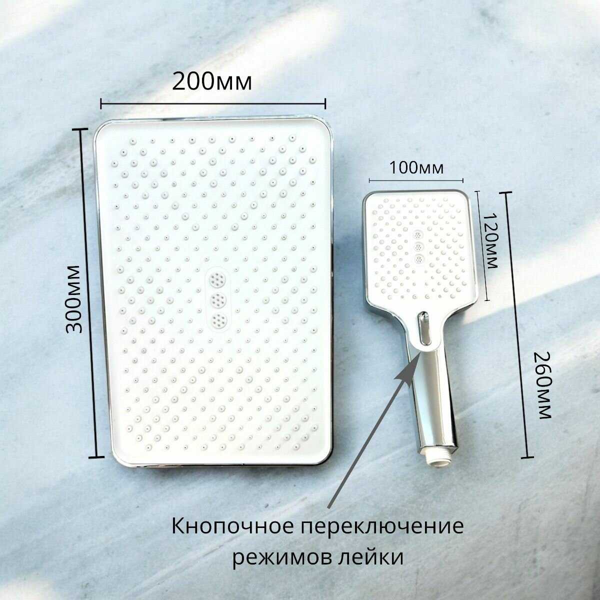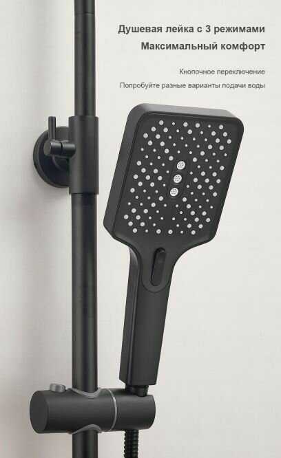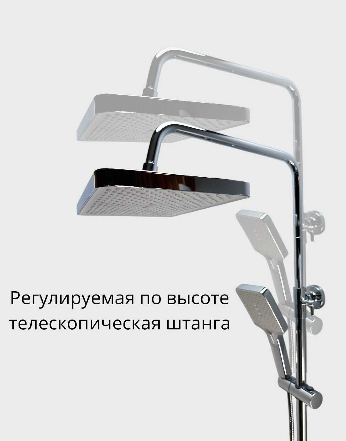 Комплектация : | верхний душ, держатель лейки, душевая штанга, кронштейн для верхнего душа, лейка, смеситель, шланг |