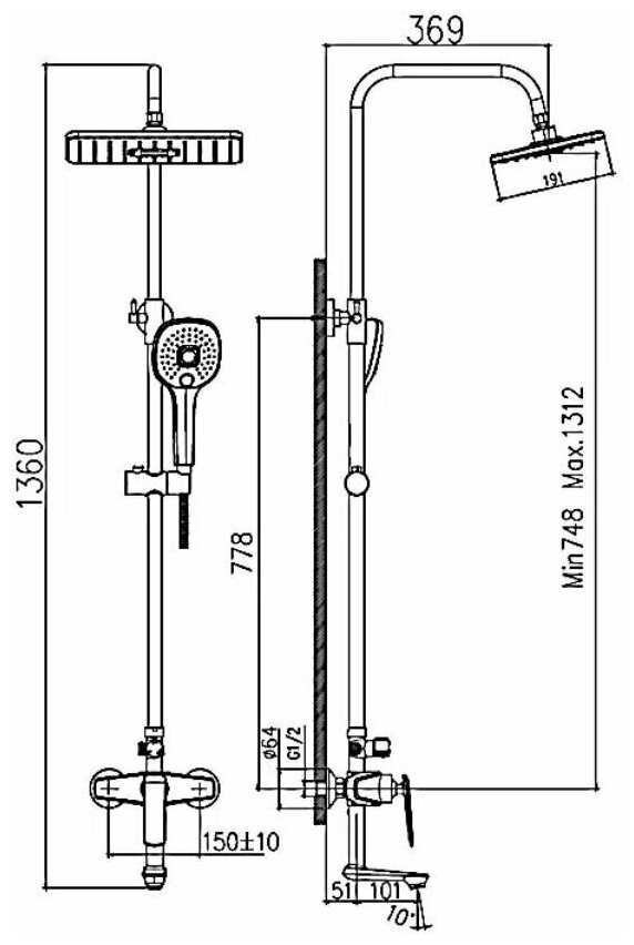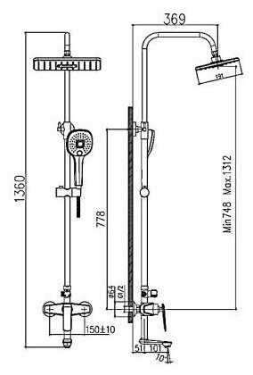 Высота стойки для душа :