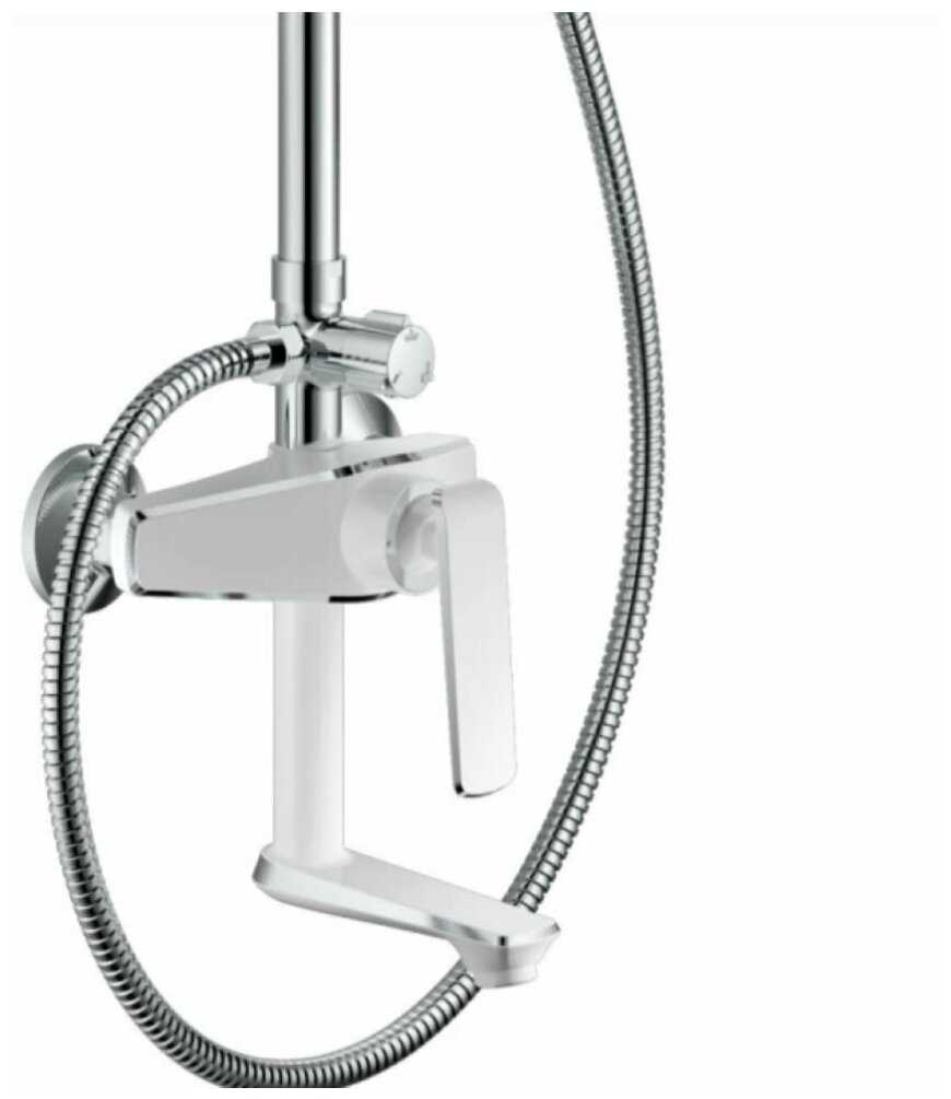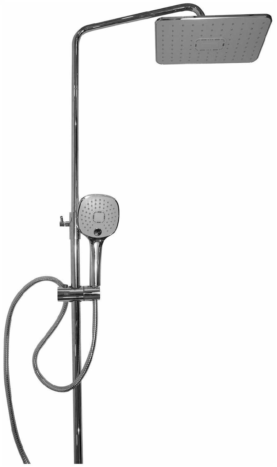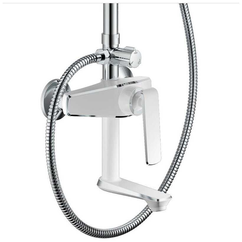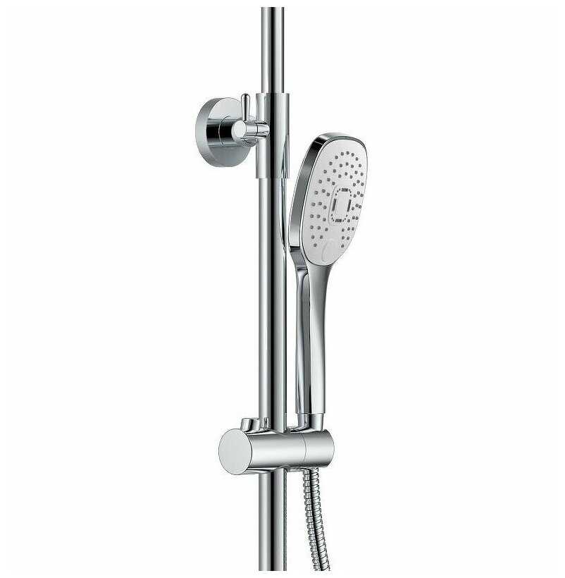 вентиль, верхний душ, держатель лейки, душевая штанга, излив для набора воды, кронштейн, кронштейн для верхнего душа, лейка, набор эксцентриков, переключатель потоков, ручной душ, смеситель, шланг