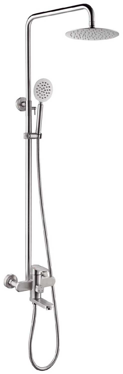 | @Комплектация : | с душевой лейкой, с шлангом для душа, верхний душ, душевая стойка, с настенным держателем, смеситель |