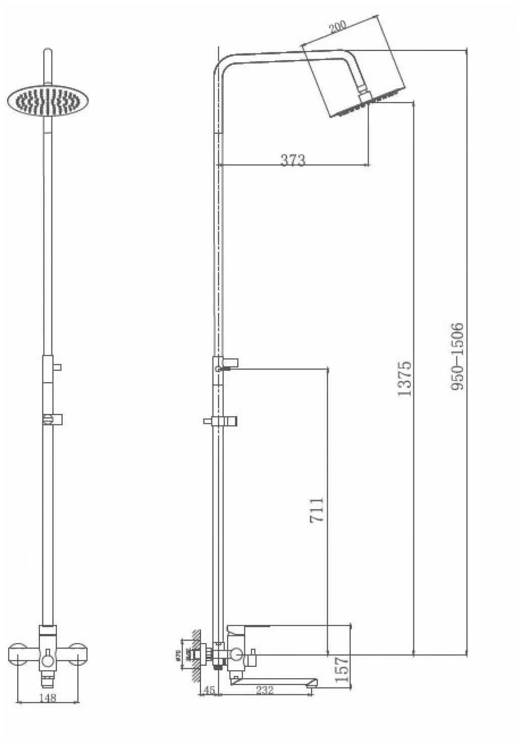 | Дополнительная информация : | высота стойки для душа: 950-1506 мм |