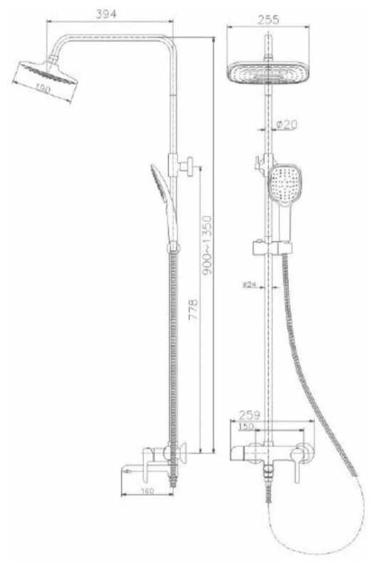 | @Комплектация : | Верхний душ, Держатель для лейки, Душевая лейка, Душевая штанга, Излив, Кронштейн для верхнего душа, Смеситель, Шланг для душа |