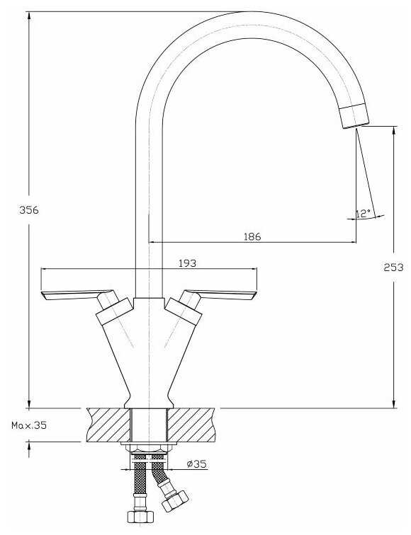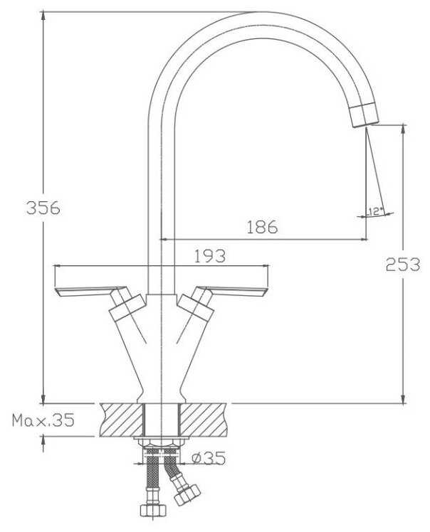 - + Хорошая конструкция: поворот на 90°. На кухне важно, что не нужно крутить вентиль всей кистью, а просто отодвинуть рычажок касанием.