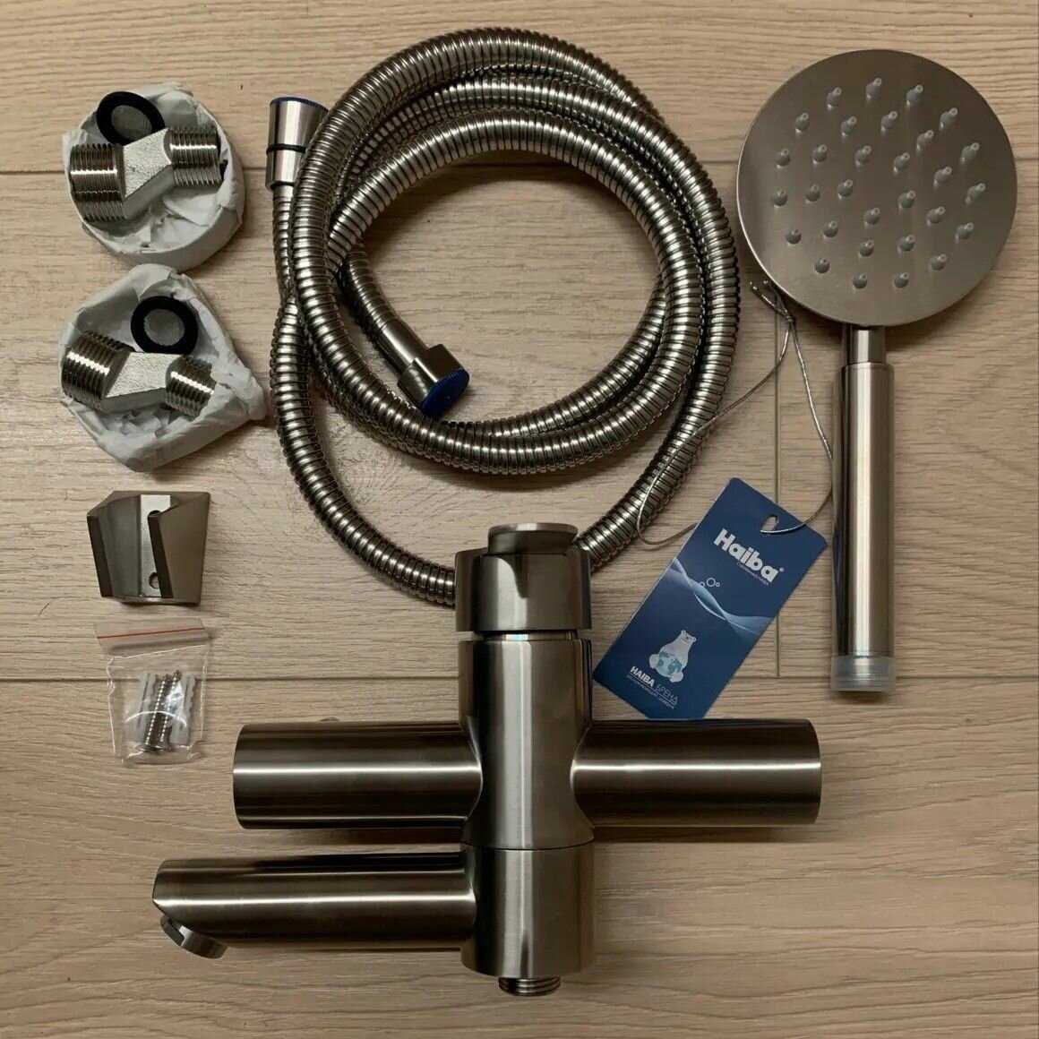 Хоелось бы обрать внимание на упаковку, ее нет совсем, кроме родной коробки, причем коробка потрепаная жизьню, постредине дырка заклееная скотчем - испугалась даже что смеситель поврежден, но к счастью всё ОК.