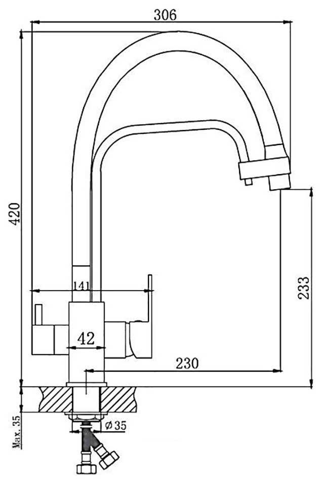 - + - Два совмещенных крана. Один водопроводный, один для фильтра воды