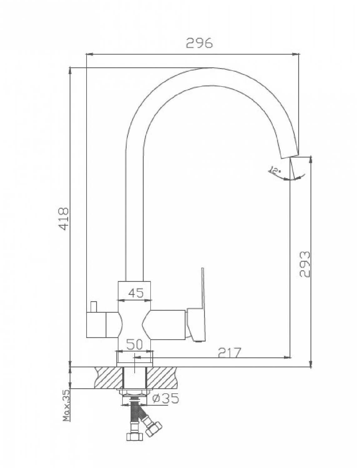 Высота излива. Два в одном-смеситель и фильтрованная вода. Мягкий ход кранов. Очень удобный конструктив крепления корпуса смесителя к поверхности мойки. Не разбрызгивается водяной поток. - - Нет усилительной проставки...