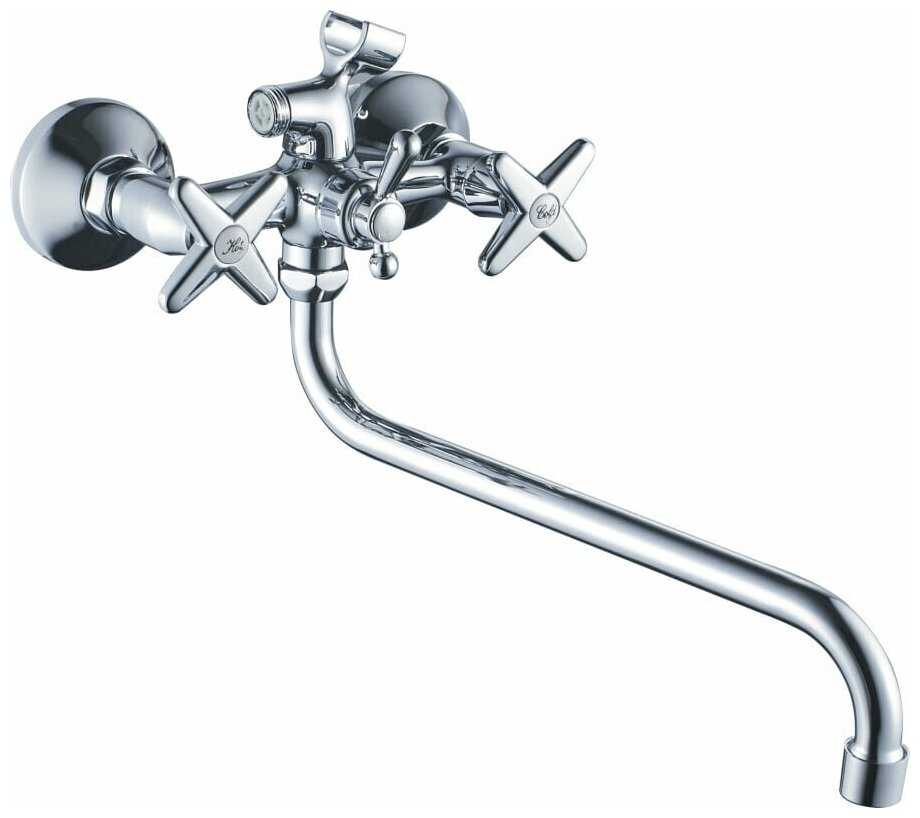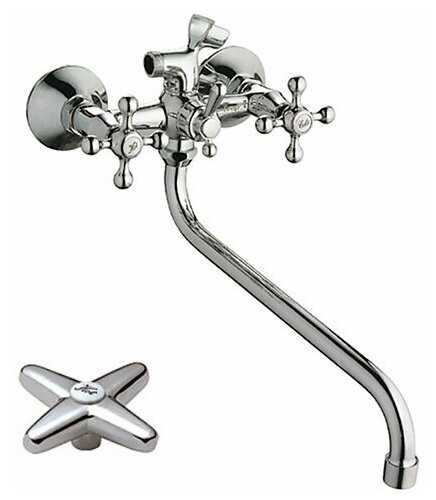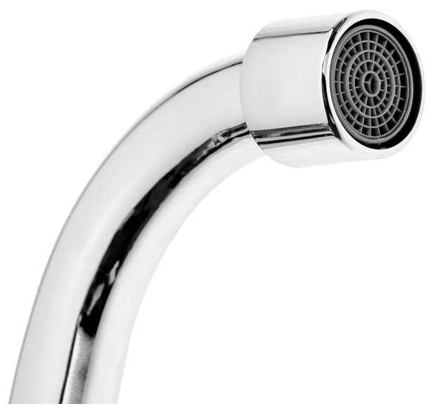 с длинным, поворотным изливом и шаровым переключателем в корпусе, латунь, хром