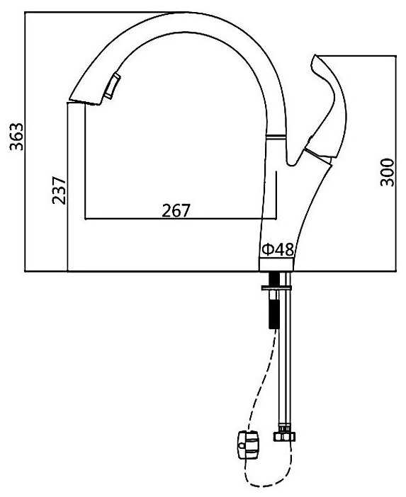 - длина излива: 267 мм.