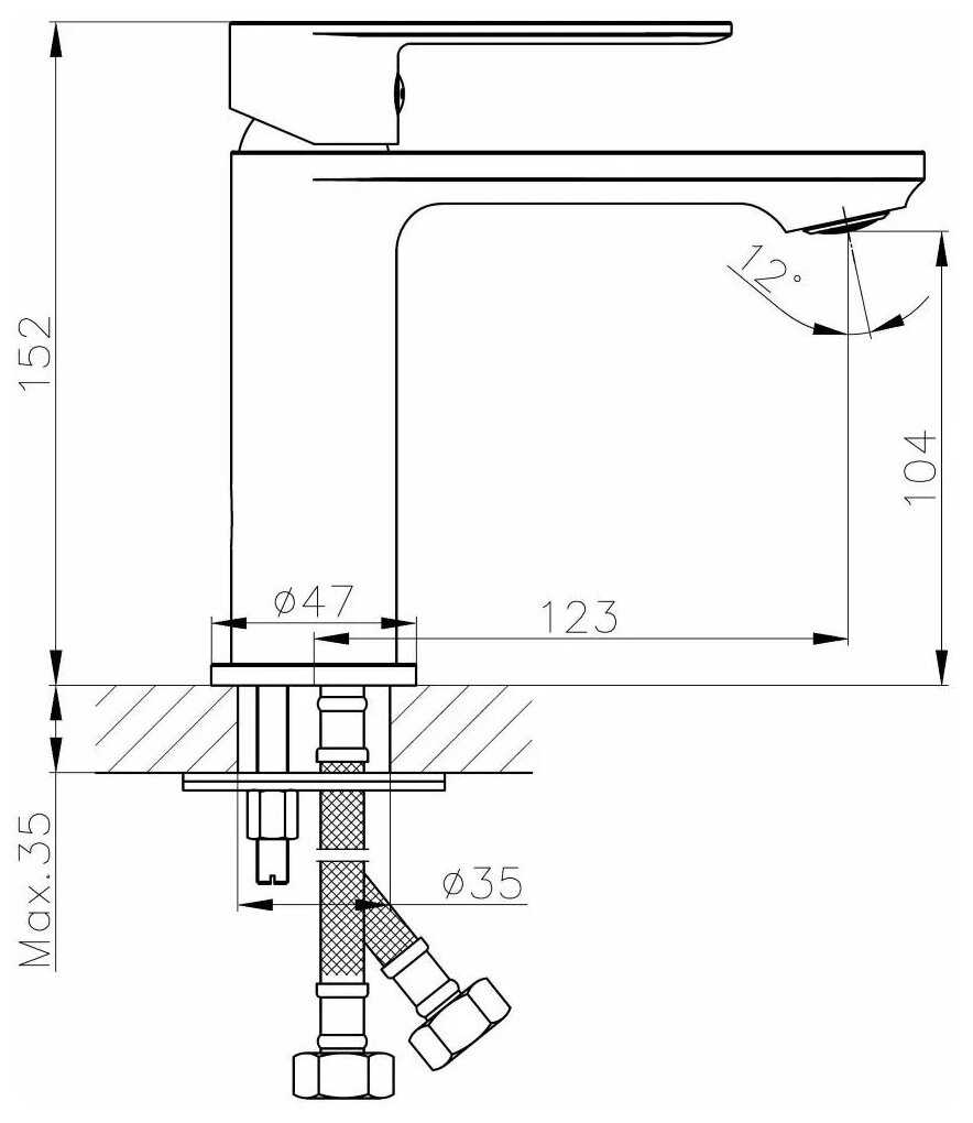 донный клапан, аэратор, встроенный фильтр, система быстрого монтажа, S-образные эксцентрики, поворотный излив, держатель душевой лейки