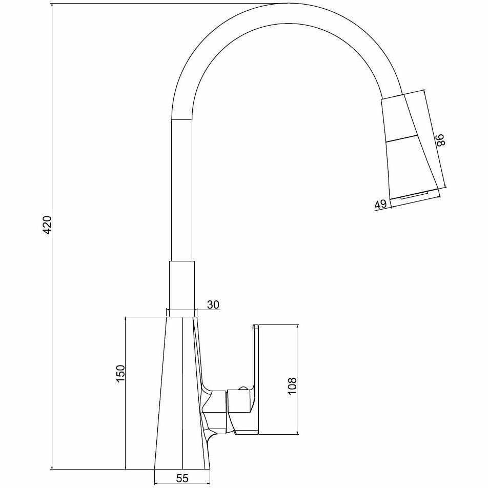 - + Дизайн .Гибкий излив .Лейка с двумя режимами.
