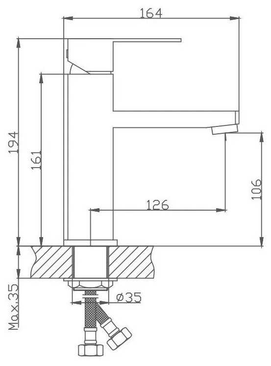 - + В комплекте подводка 0.5м. Красивый. Увесистый. Плавный ход рычага.