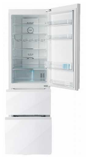 Очень красивый и вместительный холодильник. Есть складная полка и складная бутылочница, помогает разместить большие продукты и кастрюлю . Отдельная тема морозилка, порадовала тем, что в ней 4 ящика. Для таких хозяек, которые хотят точно знать в каком ящике что хранится это конечно идеал. Есть недостаток, это отпечатки на дверцах холодильника( Но протирать не так сложно, зато в дизайн стекланный фасад вписывается просто космически, особенно на свету очень классно смотрятся блестки внутри стекла. Покупкой очень довольны, каждый раз любуюсь на кухне)