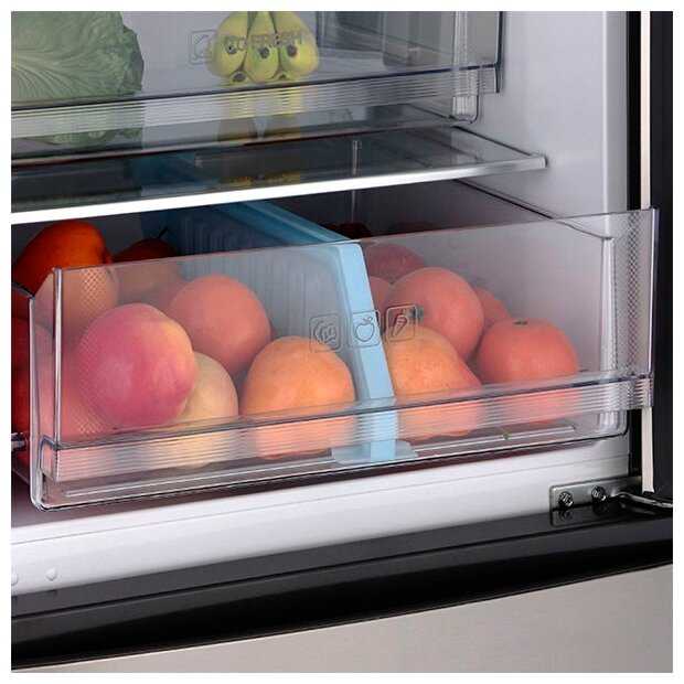 - Ионизатор и антибактериальный фильтр устраняют запахи, сохраняя свежесть фруктов, овощей и колбасы на 7–14 дней дольше; зона свежести идеальна для мяса без заморозки.