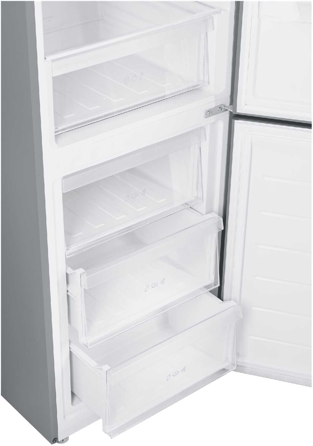 - - Ящики сделаны из тонкого пластика, легко царапаются и кажутся хрупкими. Корпус тоже не самый крепкий, типичный для недорогих вариантов. Эстетика на среднем уровне, ничего выдающегося. В морозилке полки маленькие, объёма маловато, а мне нужны более просторные отсеки. Расположение внутренних элементов уже зафиксировано, ничего не переставишь, приходится мириться с тем, что есть.