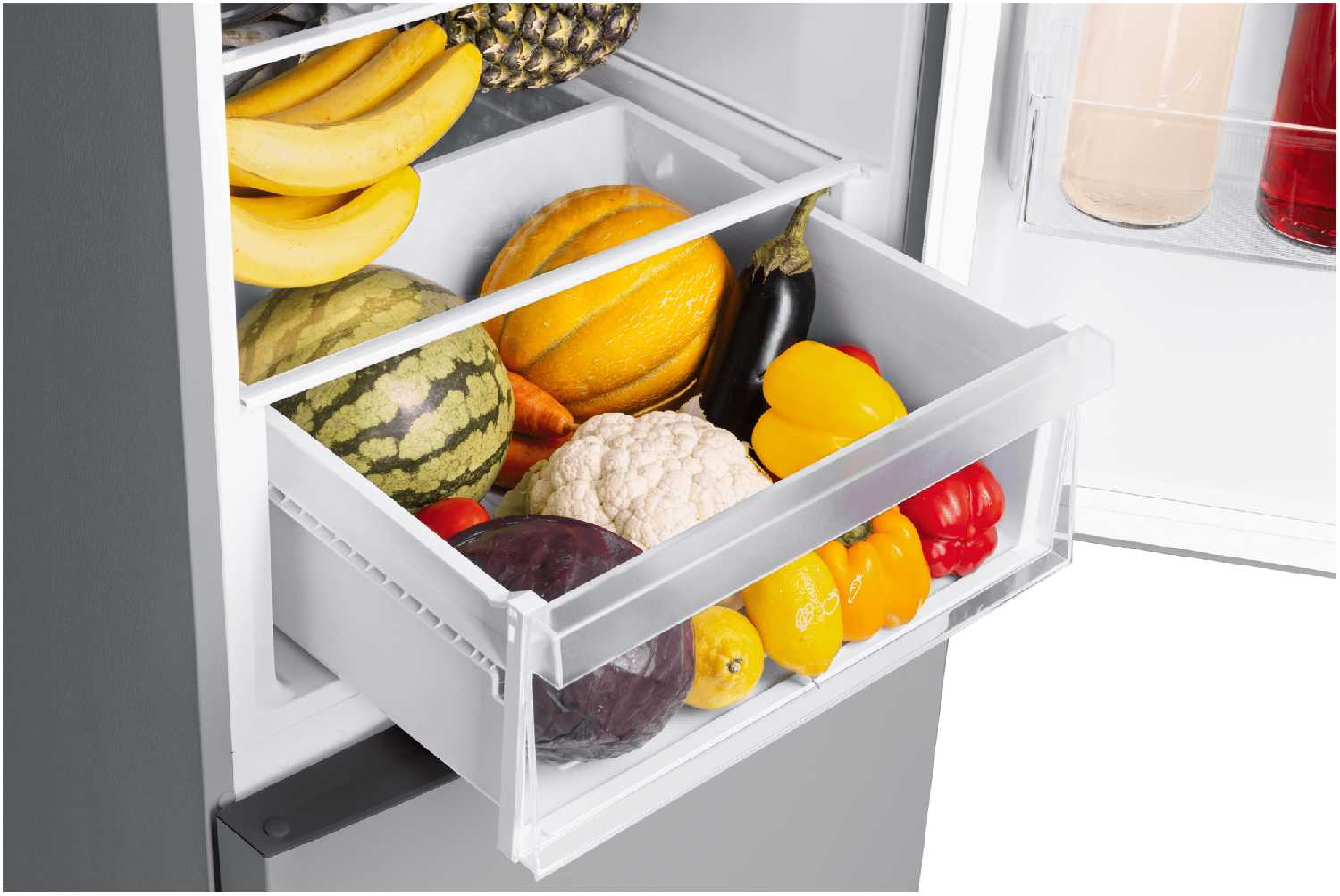 Холодильник обладает хорошей вместимостью, особенно для семьи из 2-4 человек, с большим холодильным отсеком и просторной верхней морозилкой, куда легко помещаются кастрюли, пакеты с продуктами и заморозка до 12 кг в сутки. Пользователи хвалят стеклянные полки, которые выдерживают до 4 кг, и складную полку, позволяющую размещать высокие емкости вроде кастрюль с супом. Морозилка с выдвижными ящиками удобна для разделения продуктов, но некоторые отмечают, что полки на двери могли бы быть на одну больше для бутылок. В целом, объем достаточный для повседневного использования, и он превосходит компактные модели вроде Indesit по пространству. Для большой семьи это практичный выбор, если не нужны дополнительные зоны вроде свежести. -