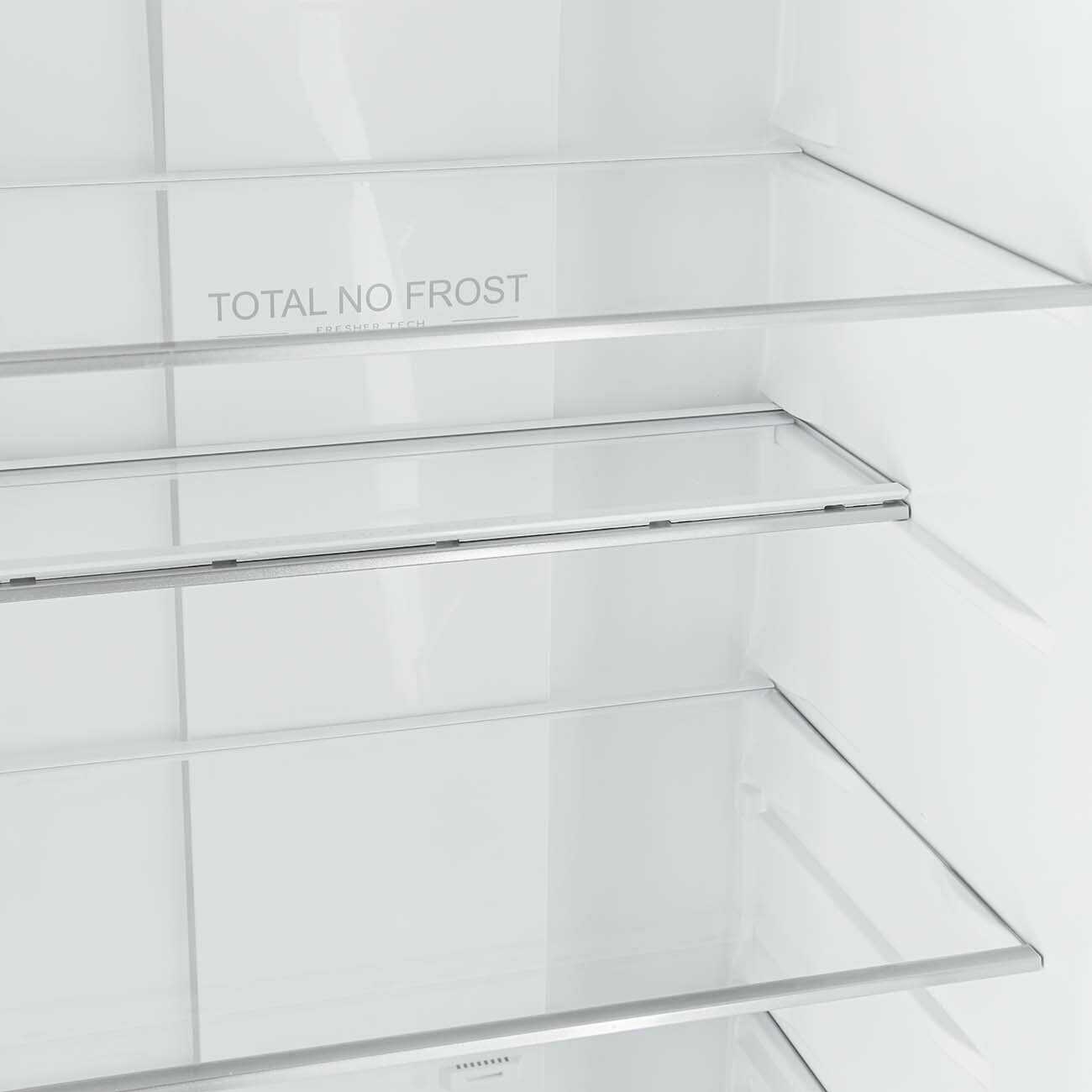 Полная система Total No Frost во всех камерах предотвращает обледенение, и размораживание не нужно — достаточно отключить и помыть. Задняя стенка закрытая, что позволяет ставить плотно к стене без риска пыли. Пользователи подтверждают равномерное охлаждение и отсутствие инея даже после года. Сигнал открытой двери через 3 минуты напоминает закрыть, усиливаясь при необходимости. Это упрощает уход и поддерживает свежесть продуктов. -