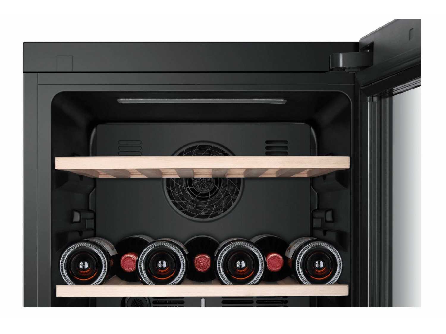 Очень стильный винный шкаф. Вмещает в себя 77 бутылок. Можно даже управлять им через wi-fi. Работает бесшумно.