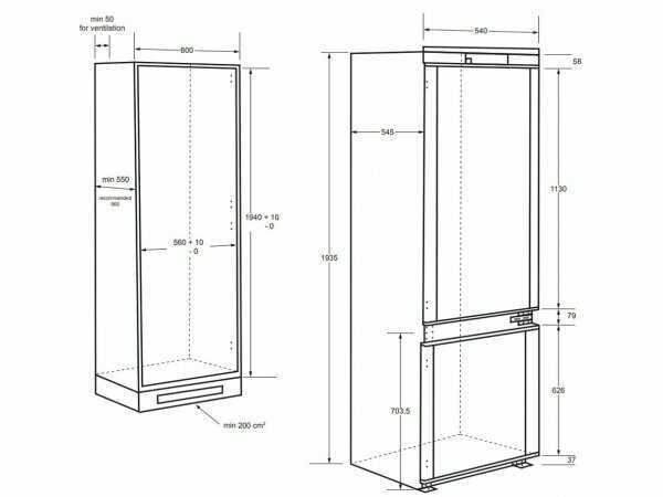 - + Долго выбирали холодильник, так как хотели встроенный, понимали, что места в нем будет меньше, чем в обычном и нашли этот, высокий , таких не очень много , в основном везде высота 180, здесь 195