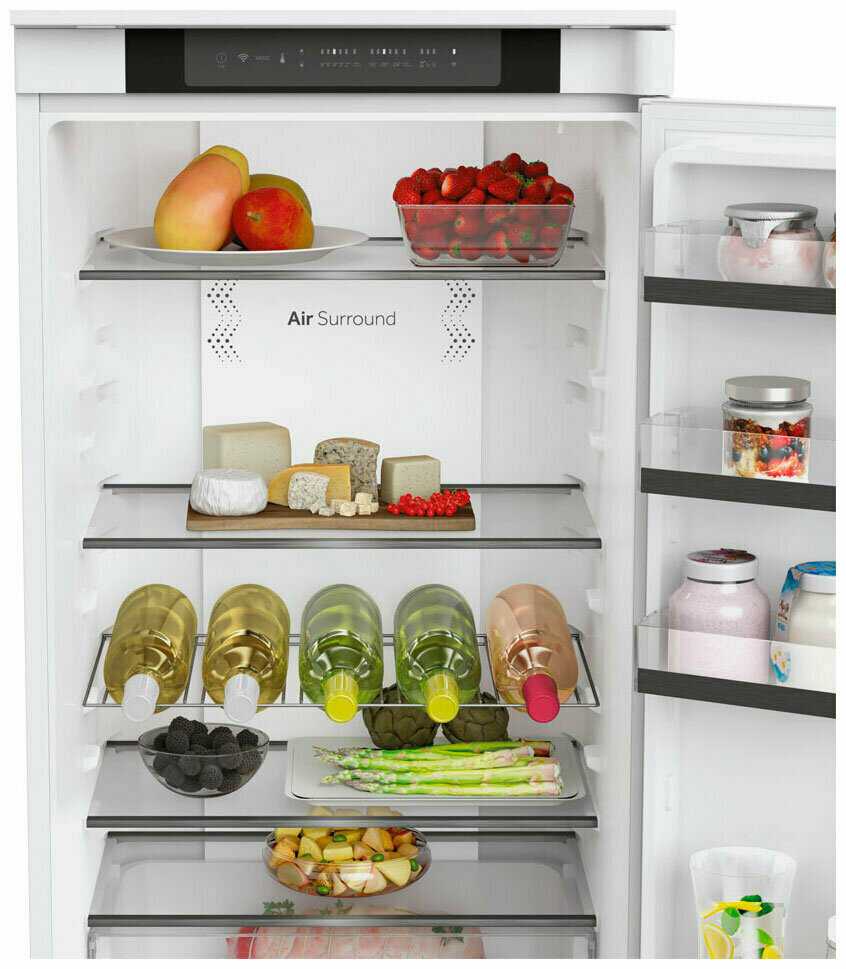 - Многоуровневые полки обеспечивают гибкость размещения крупных продуктов.