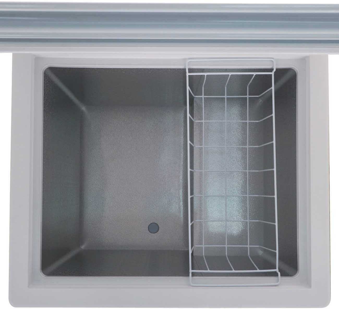 Да, в отличие от вертикальных морозильников, здесь можно разместить крупные предметы: противни с пельменями, тушки рыбы или утки. Высота камеры (85 см) позволяет складывать продукты в несколько слоев. -