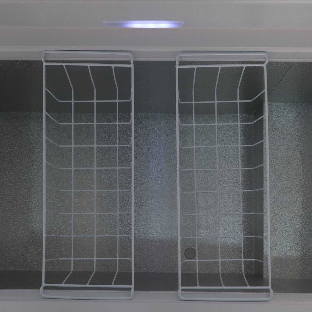 Светодиодная подсветка на крышке освещает всю камеру, облегчая поиск продуктов в темноте. Пользователи хвалят "нежное" свечение, не раздражающее глаза. Функция особенно полезна при установке ларя в гаражах или кладовых без окон. -