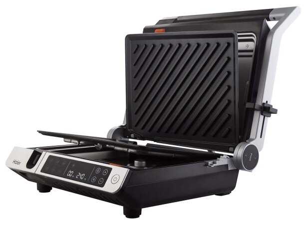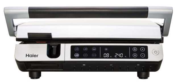 - + Добрый день, хочу оставить отзыв о данном электрогриле HAIER, качество приготовления на высшем уровне, готовит шикарно, ни чего не подгорает, вкус блюда отменный. Стильный и удобный, брал по акции + бонусы, так что считаю за такую цену - это крутая вещь для приготовления разнообразных блюд. Мясо, овощи, рыбу и стейки готовит быстро получается вкусно и сочно, не пригорает. Очень понравился термощуп, удобно и функционально. Встроенные программы, очень удобная сенсорная панель для приготовления, также делают его удобным и простым в использовании. Качественные материалы, плоская пластина для жарки, скрытый отсек для скопления жира, съёмные панели также хороши для мойки, спирали нагрева спрятаны.