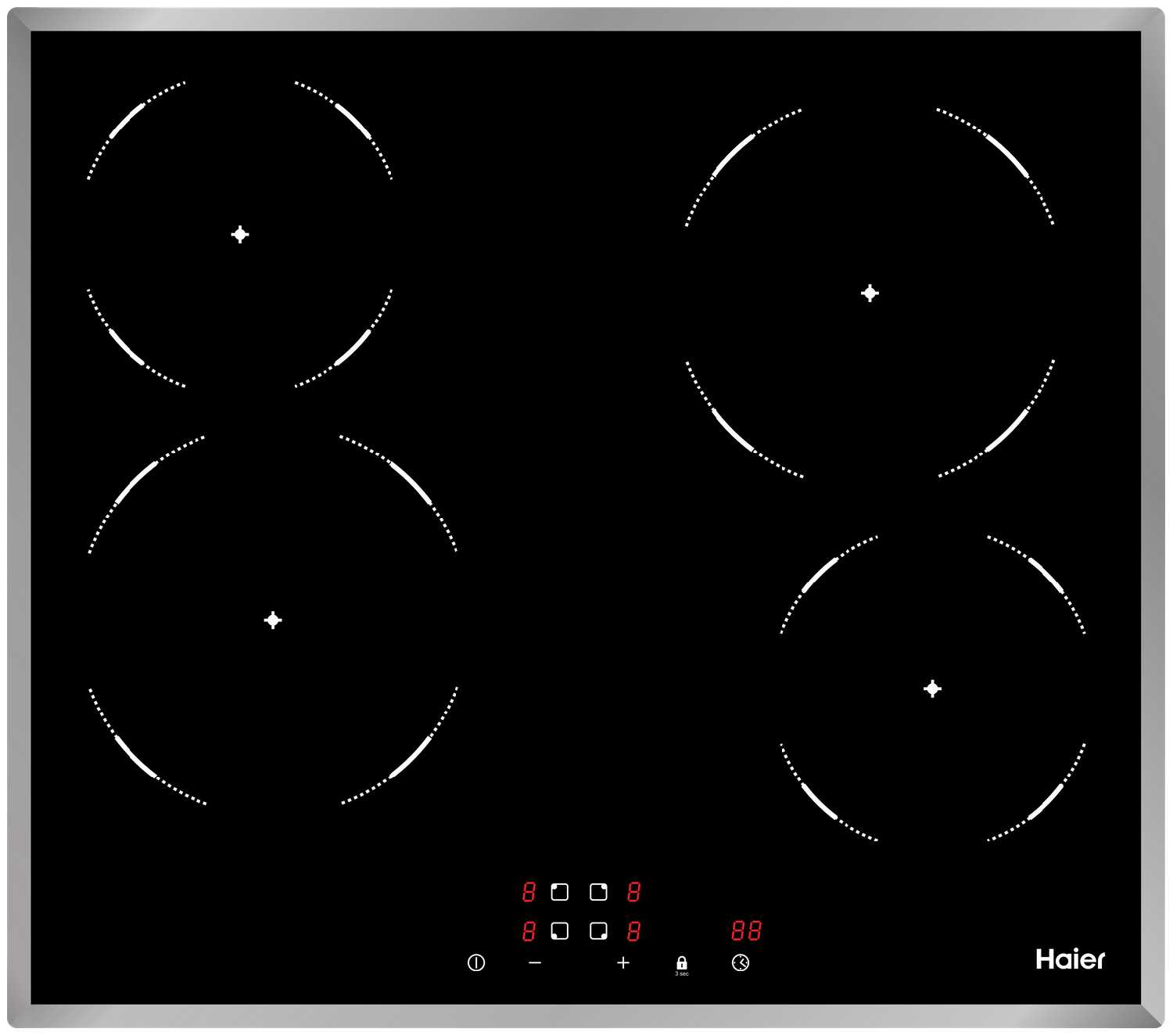 Стеклокерамическая варочная поверхность HAIER HHY-C64NVTB, цвет черный, 4 конфорки, тип нагрева Hi-Light нагрев, управление сенсорное, индикация остаточного тепла, защита от пролива , защита от детей, автоматическое отключение нареканий в пользование нет