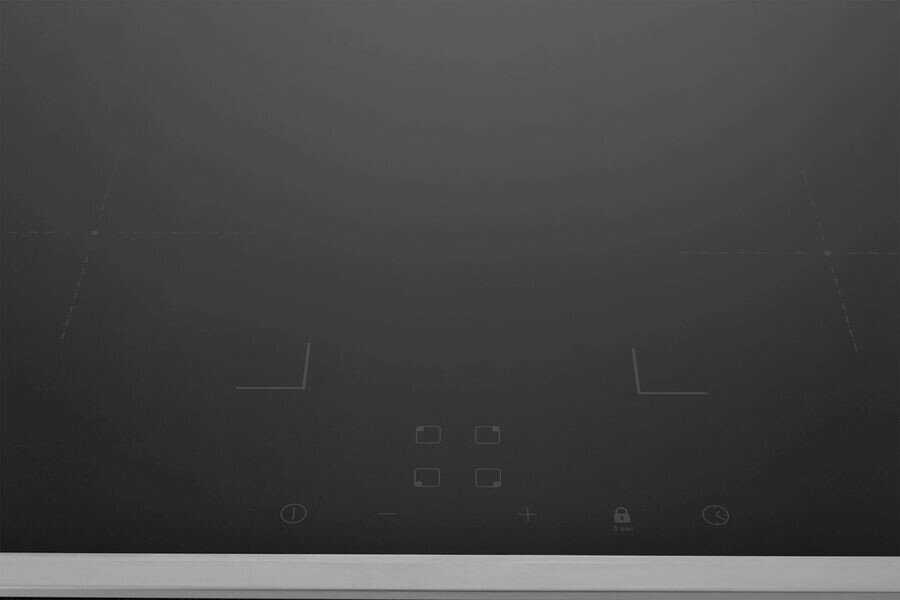 Металлическая рамка по периметру панели обеспечивает дополнительную защиту краев стеклокерамической поверхности от сколов и механических повреждений. Конструкция предотвращает скапливание загрязнений в стыках благодаря точному прилеганию к стеклу. Окантовка также выполняет практическую функцию, ограничивая растекание пролитых жидкостей за пределы рабочей зоны. -